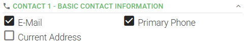 Add all relevant fields under Contact 1 – Basic Contact Information.