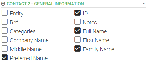 Select all relevant fields for Contact 2 – Basic Contact Information.